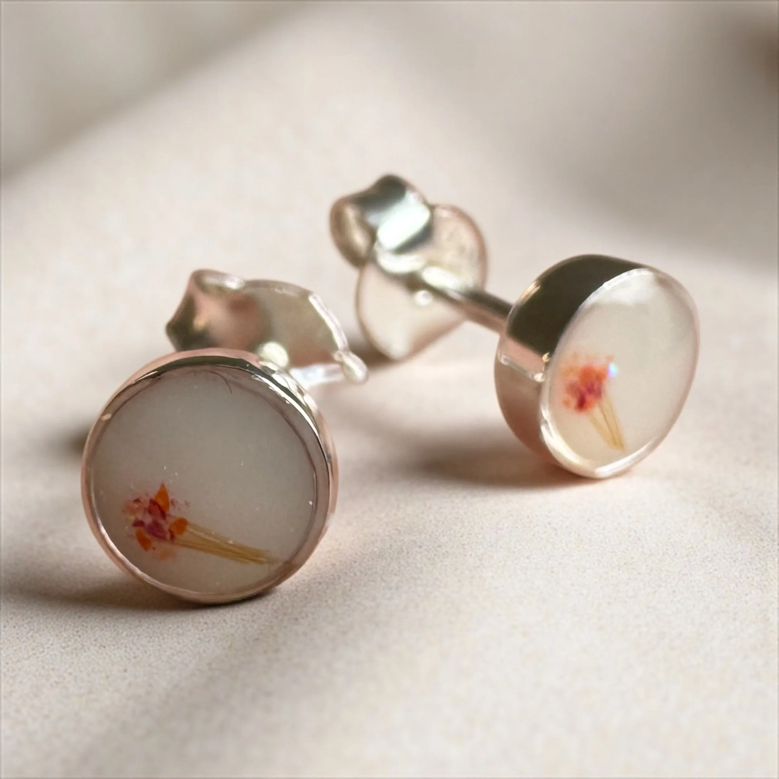 Silver Sunflower stud earrings approximately 8mm overall with 4mm inclusion area.