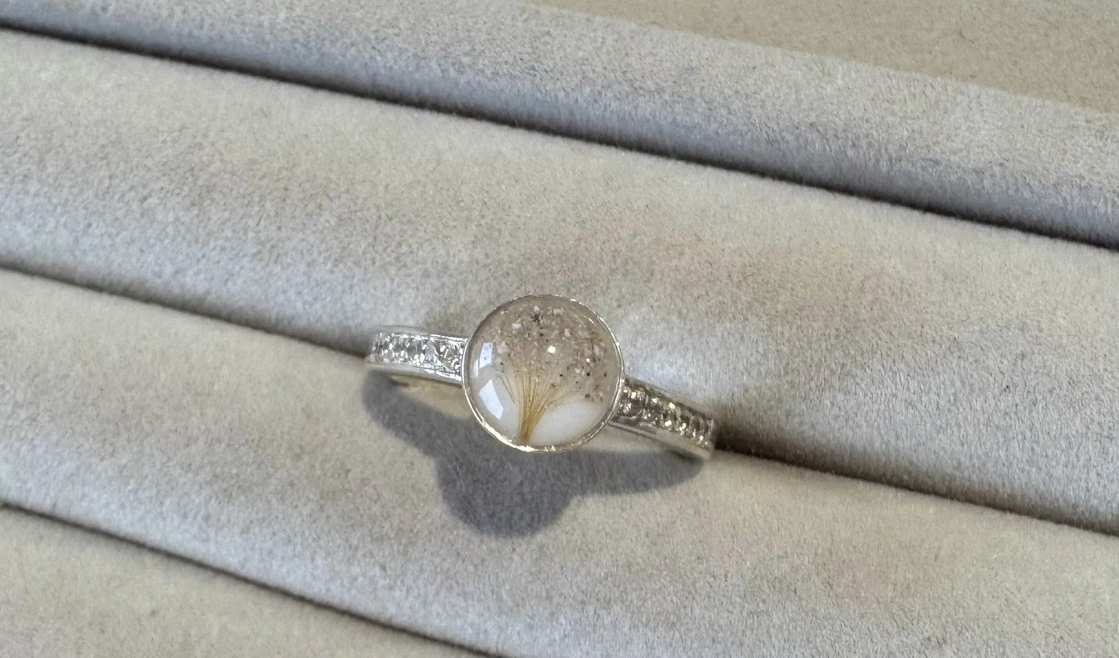 Inspired by the Tree of Life, this design can include a few strands of hair for the stems, with the petals made from your chosen inclusions – umbilical cord, dried flowers, fabric, pregnancy test caps, birthstone opal flakes, or glitter for example.
